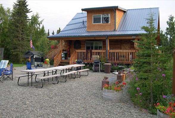 Each log cabin can accommodate four to six adults. Our cabins offer a quiet and private country setting! Just 'down the road' from fish processors and shippers. Usually beginning in late summer and through fall, we are located on a natural route where the local Kenai River Caribou herd passes by our property Moose cows and their calves are an 'everyday' sight.